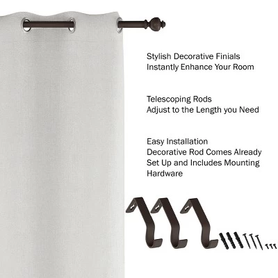 - EASY SET UP & INSTALLATION-The decorative curtain rod is packaged already set up – just set the length and install the mounts! This set also comes with all needed mounting hardware including screws, anchors and mounting brackets for easy installation.