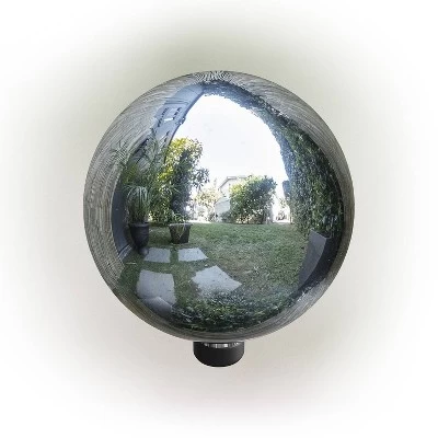 Add a beautiful, shiny accent to your yard with the 10″ Diameter Indoor/Outdoor Glass Gazing Globe Yard Decoration from Alpine. Made from lustrous glass, this spherical yard art dĂŠcor provides a unique and decorative addition to your home’s interior or exterior dĂŠcor with its stunning design. The multiuse glass gazing ball can be used in a variety of ways, including in your garden, patio, courtyard, or front door entryway or as an accent piece in your living room. Add one or multiple glass orbs to enhance your formal or informal garden’s natural beauty with their iridescent shine. An attached rubber neck allows you to display the stunning sphere on a stand. Use a metal stand (sold separately) in varying heights to help create visual interest and depth to your soon-to-be award-winning lawn. This silver colored glass gazing ball will add vibrant shine to your garden, and will help promote a healthy garden by reflecting light on sunny days. This gorgeous glass gazing sphere measures 10″ Diameter to fit almost any outdoor and indoor area and includes a one-year manufacturer’s warranty from date of purchase.