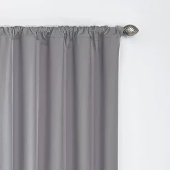 Add style and function to your décor with Eclipse™My Scene Microfiber curtains. Eclipse curtains offer a unique blend of fashion and function for any home décor and a great addition to any kids’ bedroom. The innovative, white foam-backing is applied to the fabric and allows you to enjoy all of the light-blocking, noise reducing and energy saving benefits, while providing the same fashionable style and elegance of naturally flowing curtains. Hang two or more curtain panels on a standard or decorative rod for optimal coverage and desired effect. Sold as a single rod pocket panel measuring 42 inches wide in your choice of 63 or 84 inch lengths. 3 inch rod pocket; 1 to 2 inch rod recommended for maximum styling. Luxuriously soft fabric is offered in a variety of colors. Rod sold separately. 100% Polyester. Machine wash gentle cycle, tumble dry, do not bleach.