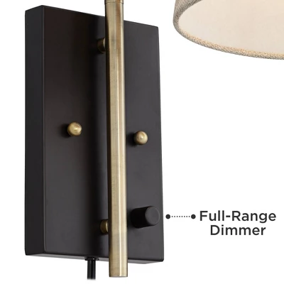 This antique brass swing arm plug-in wall lamp from the 360 Lighting brand is the perfect solution when you want some light but don’t feel like lighting up the whole room. With an adjustable arm, this lamp can move horizontally from left to right to direct light in the position you want. A tan drum shade with a rolled edge trim covers the bulb.