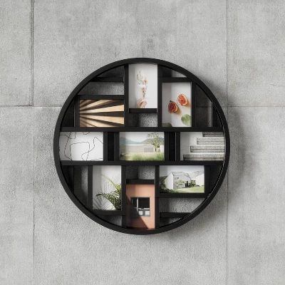 Luna holds nine of your favorite 4×6 inch photos in a modern, gallery-style fashion and will effortlessly enhance your wall decor. At the same time, its practical design features a solid backing which allows you to clean and change your images easily. Luna has an impactful 23-inch diameter (58.4 cm) design and comes with two sawtooth hangers pre-mounted to the frame; so, hanging it is also a breeze.