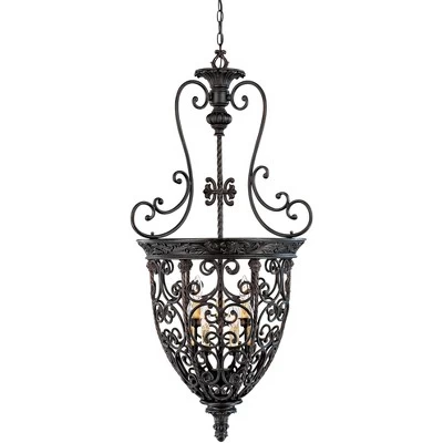 - French Scroll 9-light foyer chandelier by Franklin Iron Works™.