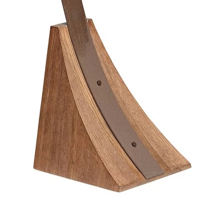 - Dark rust finish over metal pole and accents. Natural oak finish over solid wood base. Natural mica material amber shade. Please note – slight color variations may occur in the shade.