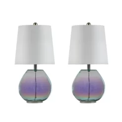 - This table lamp is constructed of robust and shiny glass and iron with fabric material