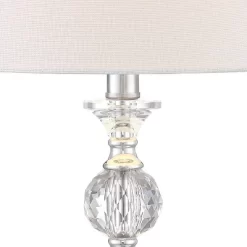 Brighten up any room to create a warming atmosphere for you and your guests with this chic table lamp. Make a statement with this unique lamp on mantle, console table or in any living space. This table lamp is a stylish and polished accent for your home and an efficient source of ambient lighting. A socket for a medium-sized E26 bulb. Cord length is 60 inches. Suitable for indoor use only. Simple yet classy drum-shaped shade that measures 18”L x 10.50”H, and has a spider/harp fitter. Comes with an on/off switch. Modern theme. This item ships in one carton.