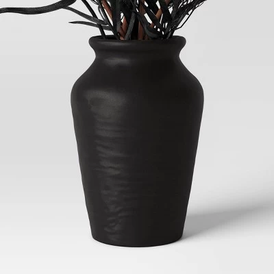 Add a dash of spooky season splendor to your tabletop or countertop with this Halloween Grass and Floral Plant Arrangement from Threshold™. This artificial botanical arrangement has dark-hued twigs and florals placed inside a black ceramic urn-shaped container for instant display. It makes the perfect seasonal accent for your living room coffee or side table, dining room buffet or sideboard, or entryway console table.