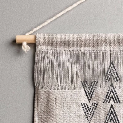 Give your room some direction with the Holli Zollinger French Linen Tri-Arrow Wall Hanging from Deny Designs. Suspended from a light-colored wooden dowel and white rope, this woven wall hanging features subtle neutral striping with a printed directional triangle pattern. Hang anywhere you need to adorn a wall, or use the sheer fabric as a quick way to gently separate a space.