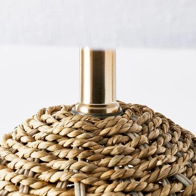 Bring a little extra light to your decor with the Large Seagrass Table Lamp from Threshold™ designed with Studio McGee. This elegant table lamp features a woven seagrass design that brings classic charm to any tabletop. It sports a clean white lampshade that brings a bright touch to your room, while the warm glow from the light is great for creating a cozy atmosphere. It works with most standard lightbulbs and has a five-foot cord that you can simply plug into the wall. Whether you’re adding a fresh accent to your living room or looking to add some light next to your reading chair, this seagrass lamp is sure to brighten any space.