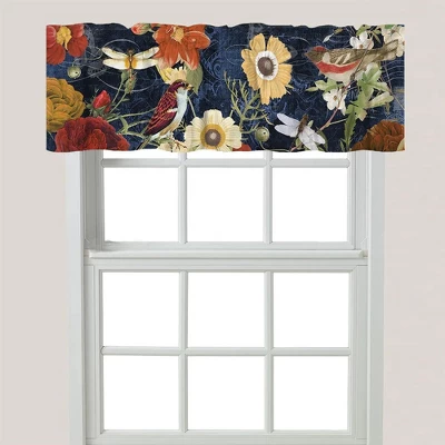 The “Vintage Floral”window valance will create a dramatic look in any room. Featuring a dark textured background and vibrant foreground, along with realistic birds and butterflies fluttering through richly colored flowers. Contrasting with the lively depth of the foreground, is the collage style background featuring newspaper print, butterflies, and shadowy flowers.The deep hues throughout the design will bring an elegant feel to your home.