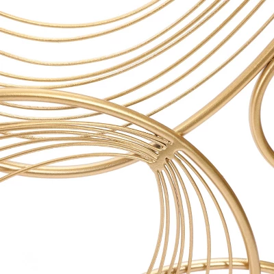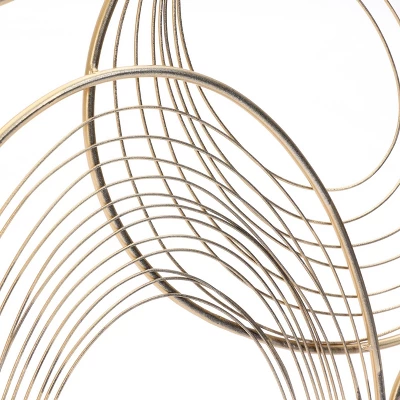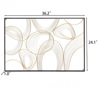 Adding this contemporary abstract rectangular wall decor is an excellent way to enhance the mood of your home. The fluidity of the handcrafted looping and interwoven gold metal brings warmth to your wall livening up any dull part of the wall. Framed in a perfectly contrasting and complementing black finish, the wall sculpture comes off as a stunning work of metal art. Its modern design makes it an intriguing and eye-catching addition to any contemporary-inspired decor. Give your entryway, living room, bedroom, or office a lift with this large wall decor and add personality to empty walls. The open style of the wall sculpture allows your wall color to peek through, giving this set your individual touch! The gorgeous metal decoration makes a great housewarming, wedding, and birthday gift!