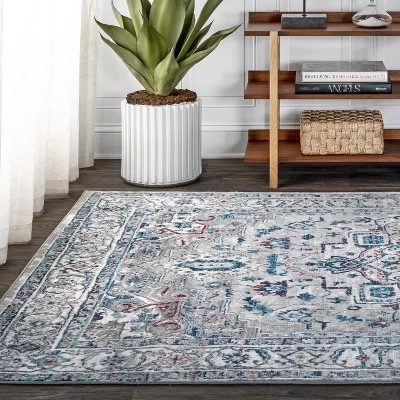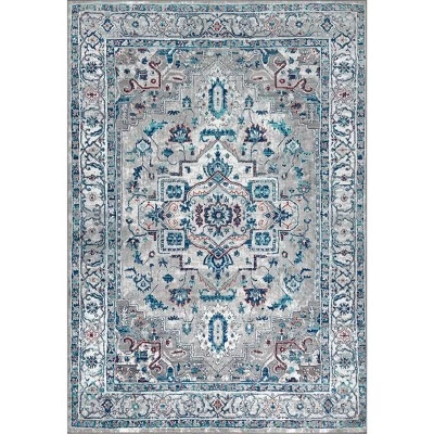 - Light gray is enlivened with accents of different shades of gray in this traditional area rug