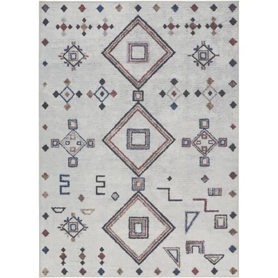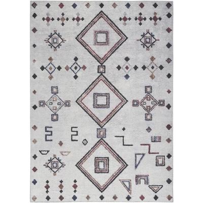 Bring global energy home with this geometric rug from the Nicole Curtis Series 1 Washable Rug. Presented in shades of burgundy, grey, and black, the global-inspired design brings a worldly look to contemporary and boho décor. This flat woven washable rug is crafted from wonderfully soft poly-chenille and cotton fibers.