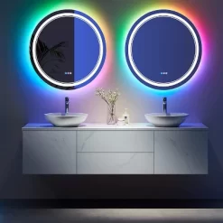 Organnice RGB series modern and smart mirror adds new colors to your daily life with its 11 modes dimming RGB mirror. The mirror is made with strong and sturdy 0.19 in. tempered glass, making it shatterproof and safe to use. With its frameless design and anti-corrosion feature, this LED luminous bathroom mirror is designed for high quality and high performance.
