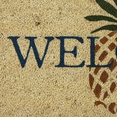 Greet guests with this gorgeous doormat that includes a yellow and green pineapple motif and a contrasting blue welcoming. This durable, skid resistant doormat is made from all-natural fibers for long-term use. Comprised of a tropical hand-printed design that makes it the perfect addition to your everyday and seasonal entryway decor.