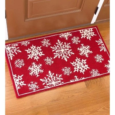 Our Indoor/Outdoor Hooked Snowflake Rug dresses your home up for the holidays or the winter season while offering guests a cheerful welcome. Made of durable hooked polypropylene, this all-weather rug is the perfect way to both protect and decorate your floors with a dashing holiday touch. Weather-resistant, easy-care polypropylene rug can be used indoors or outside – it won’t fade or break down, and it stand up to lots of foot traffic. Plus, the charming design complements anything from traditional to transitional decor. The bright red rug features different sizes and shapes of white snowflakes. Use this accent rug as a welcome mat or kitchen mat or hearth rug – anywhere you want added style and color. 100% polypropylene is hand-hooked and can be vacuumed (do not use beater attachment), spot cleaned or hosed clean; air dry. Poly-web backing; use of a rug pad is recommended. Imported.