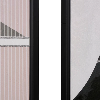 - Abstract canvas art wall decor featuring pale gray, beige, pink, black and white shapes
