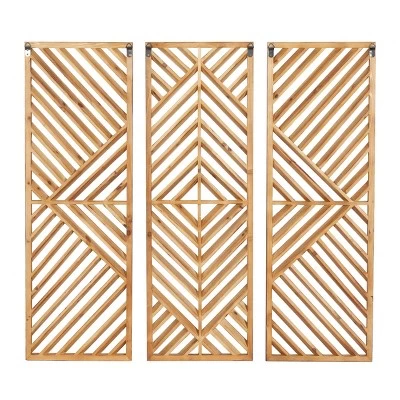 Create an excellent focal point on your walls paired with some cute accent tables, and level up your home with this amazing wall decor. Showcase your personality and turn your walls into an art gallery with this captivating wall décor. Mesmerizing wall art is ideal for industrial, eclectic, and farmhouse-inspired living spaces in a natural setting background. This item ships in 1 carton. Can be hung vertically using the D-rings on the back; nails and screws not included. Suitable for indoor use only. This item ships fully assembled in one piece. This brown colored wall sculptures comes as a set of 3. Contemporary style.