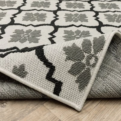 Trinity Floral Trellis Patio Area Rug Beige/Black – Captiv8e Designs