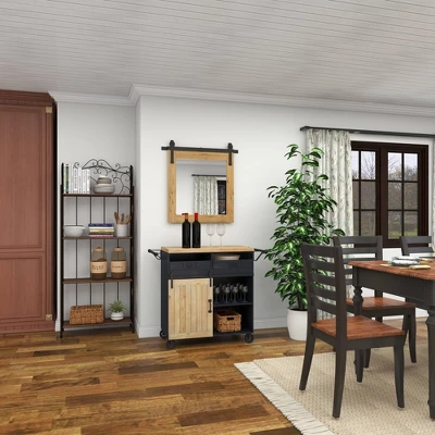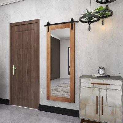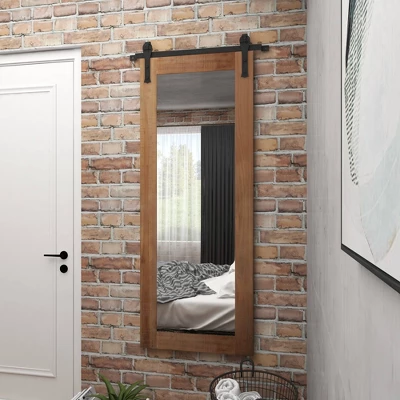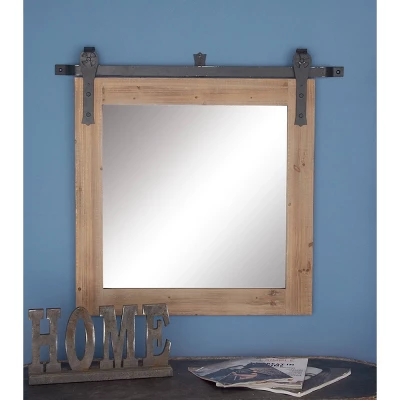 Wood Wall Mirror With Metal Hanging Rod Brown – Olivia & May
